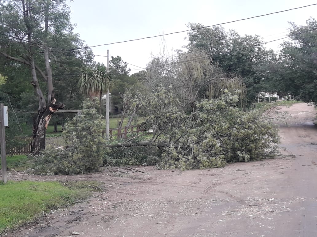 Arboles y ramas caídas en Villa Ventana a consecuencia de las ráfagas