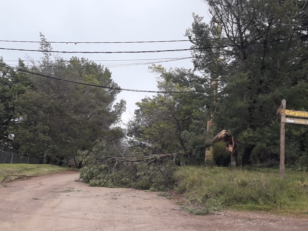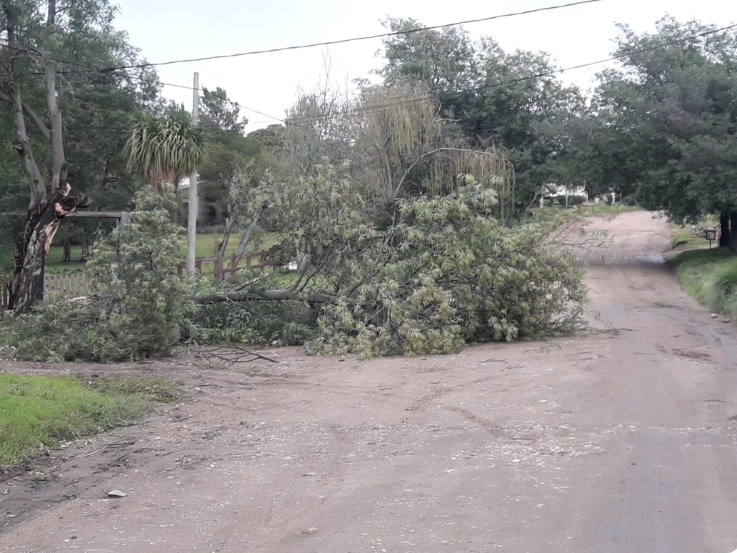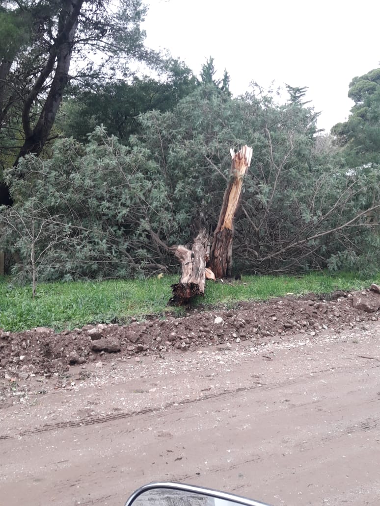Mientras tanto otras brigadas de la Cooperativa Eléctrica continúan este mediodia trabajando en la zona rural donde hubo caída de postes y cables producto del fuerte temporal.