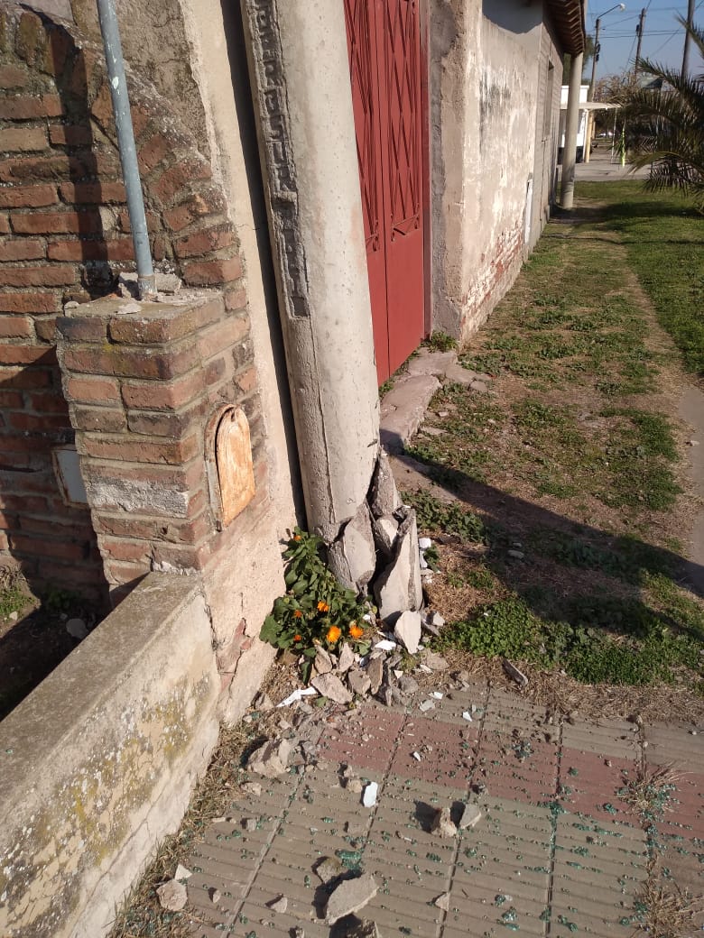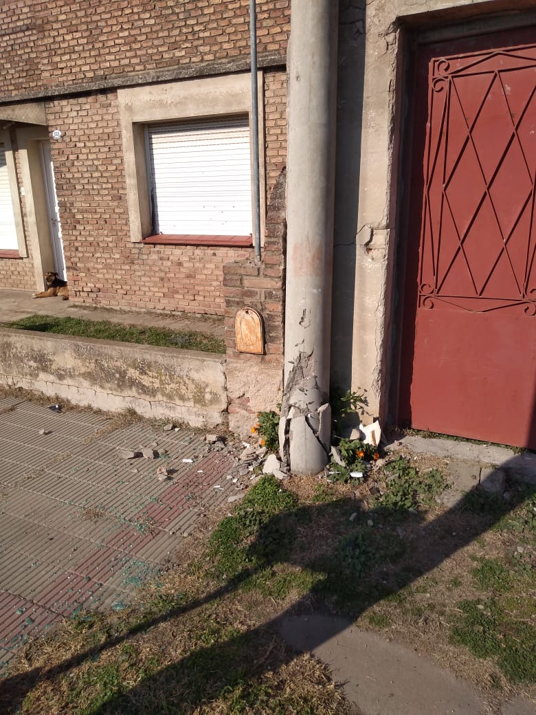 Ayer domingo, pasado el mediodia un vehículo embistió un poste del tendido eléctrico y daño un sector de pared en el domicilio de Brown 530 de nuestra ciudad.