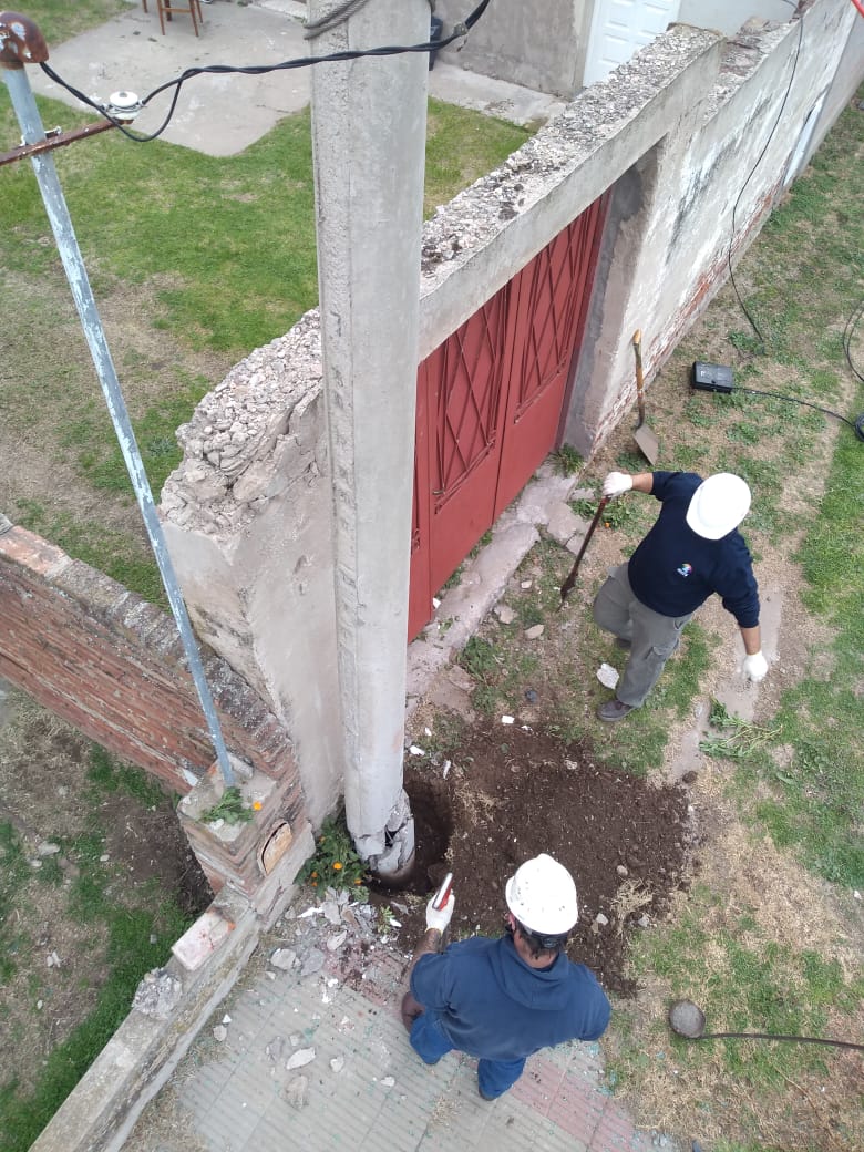 Dentro de las tareas realizadas fue necesaria la reposición del poste de cemento que quedó literalmente inutilizable y constituyéndose en un riesgo para quienes hubieran transitado por el lugar.