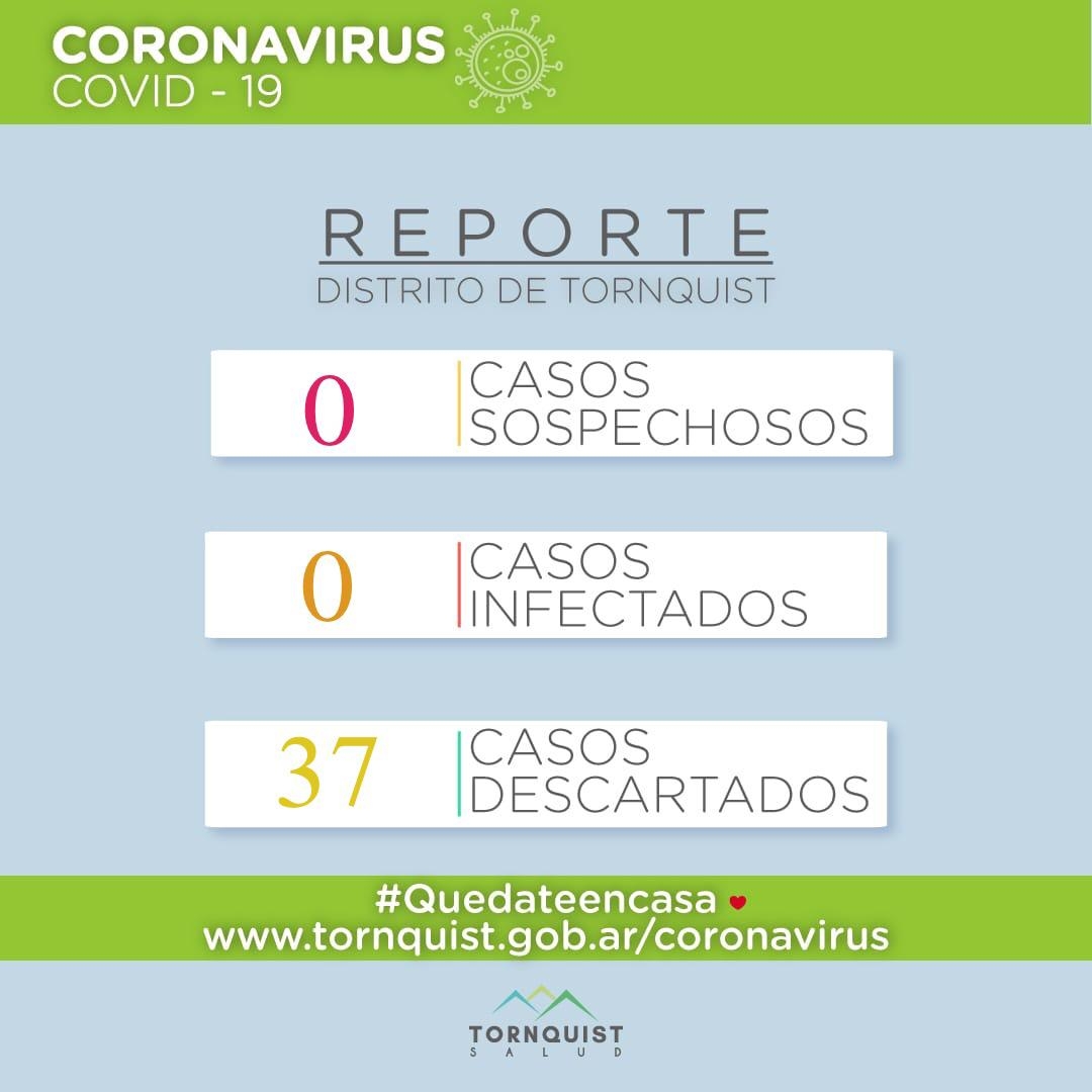 La Secretaría de Salud del Municipio de Tornquist informó que fueron descartados los tres casos reportados en el día de ayer como sospechosos de COVID19.