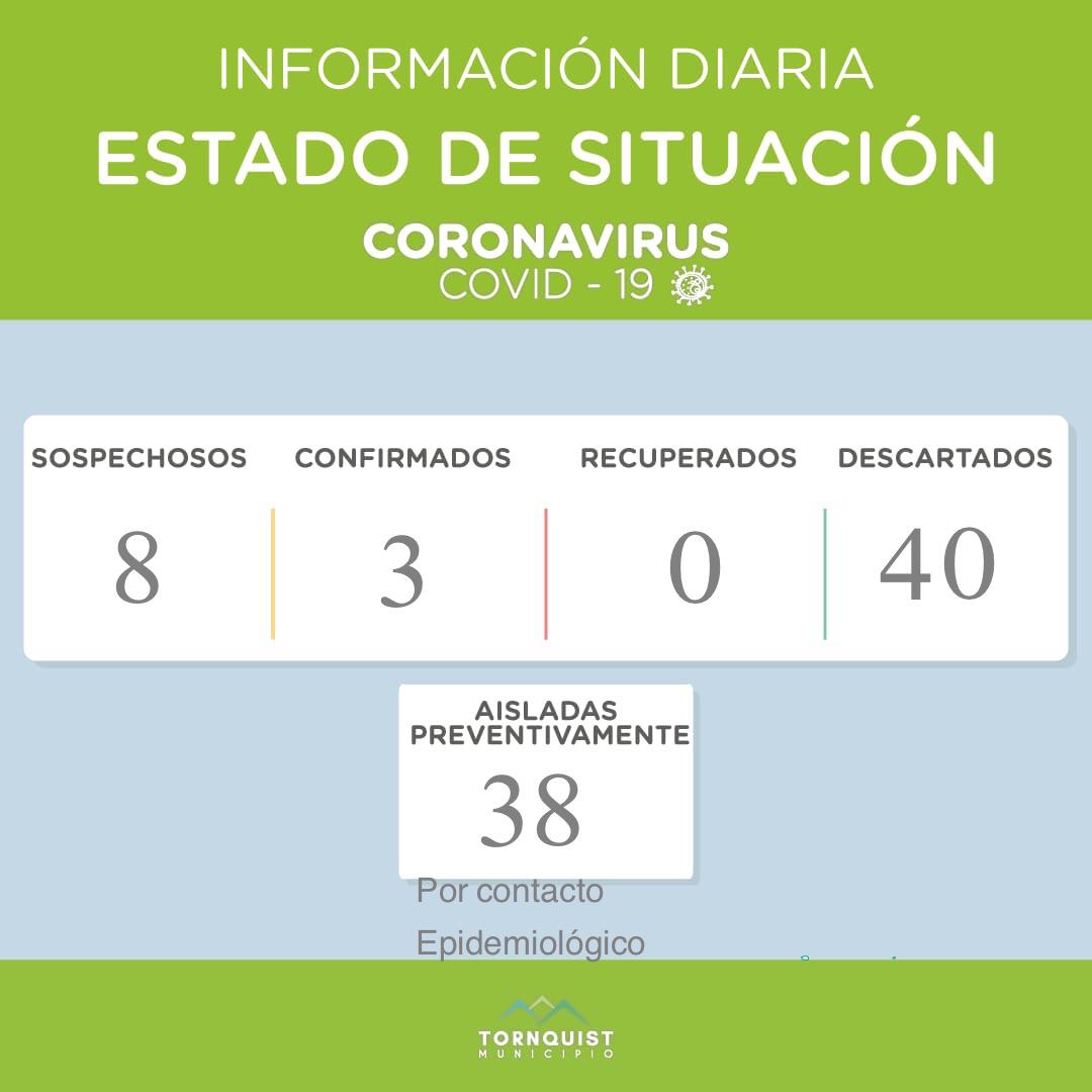 El área de Salud informó que ahora son tres los casos confirmados de Coronavirus en el distrito, con ocho casos sospechosos, 40 descartados y 38 personas aisladas. <a href="http://www.celttv.com.ar/?attachment_id=51116" rel="attachment wp-att-51116"><img class="alignleft size-full wp-image-51116" src="http://www.celttv.com.ar/wp-content/uploads/2020/08/840.jpg" alt="" width="1080" height="1080" /></a>