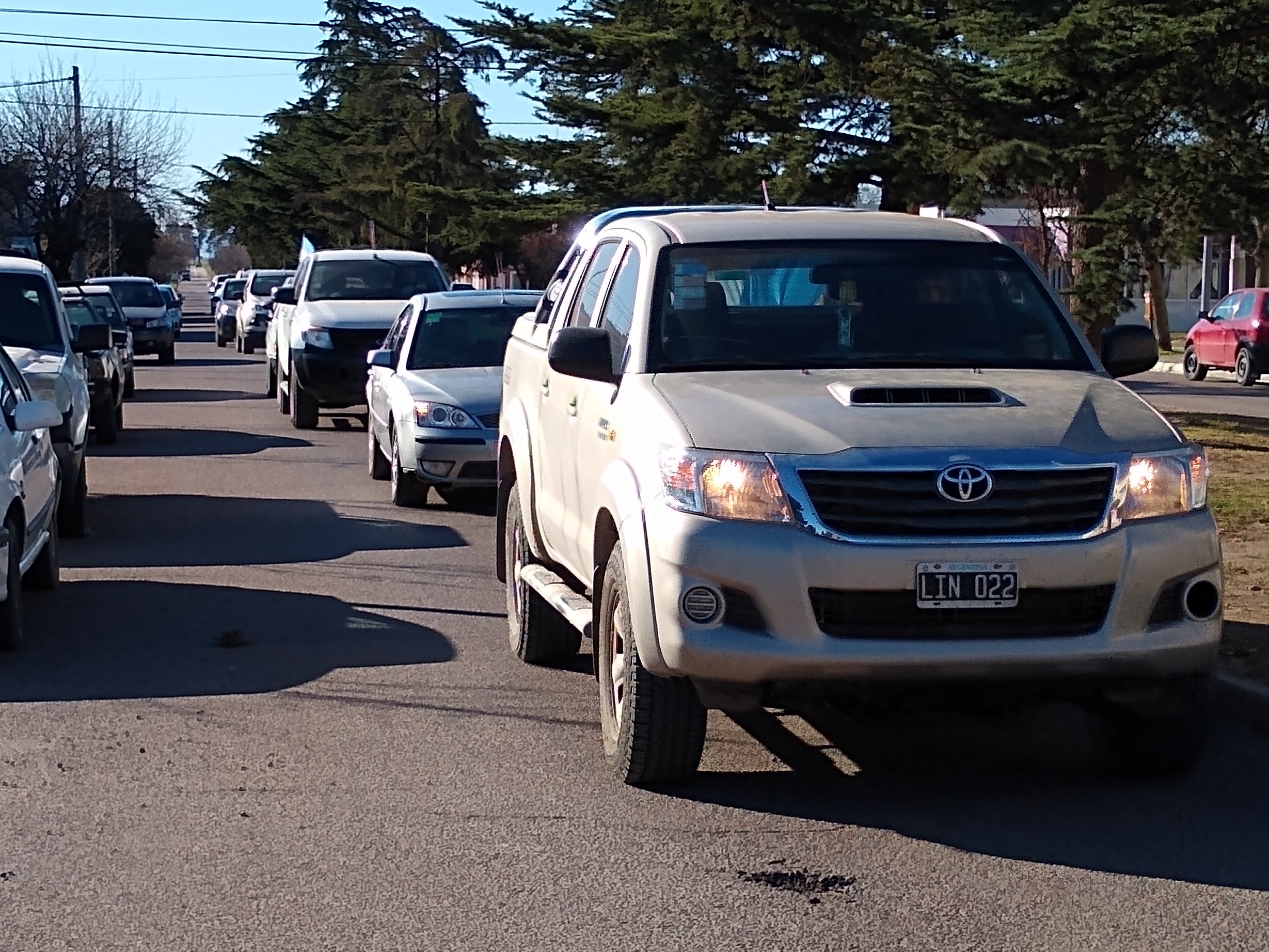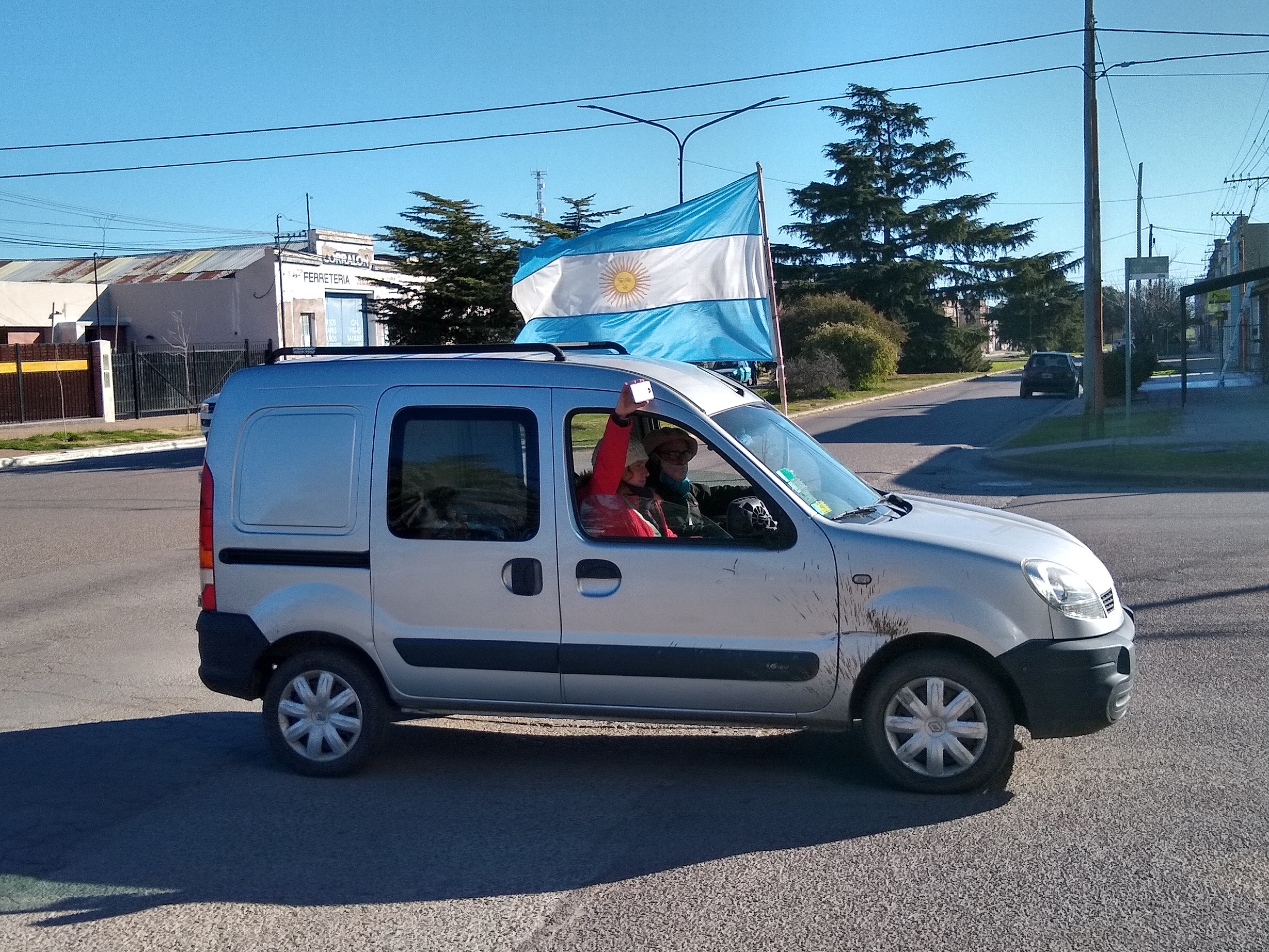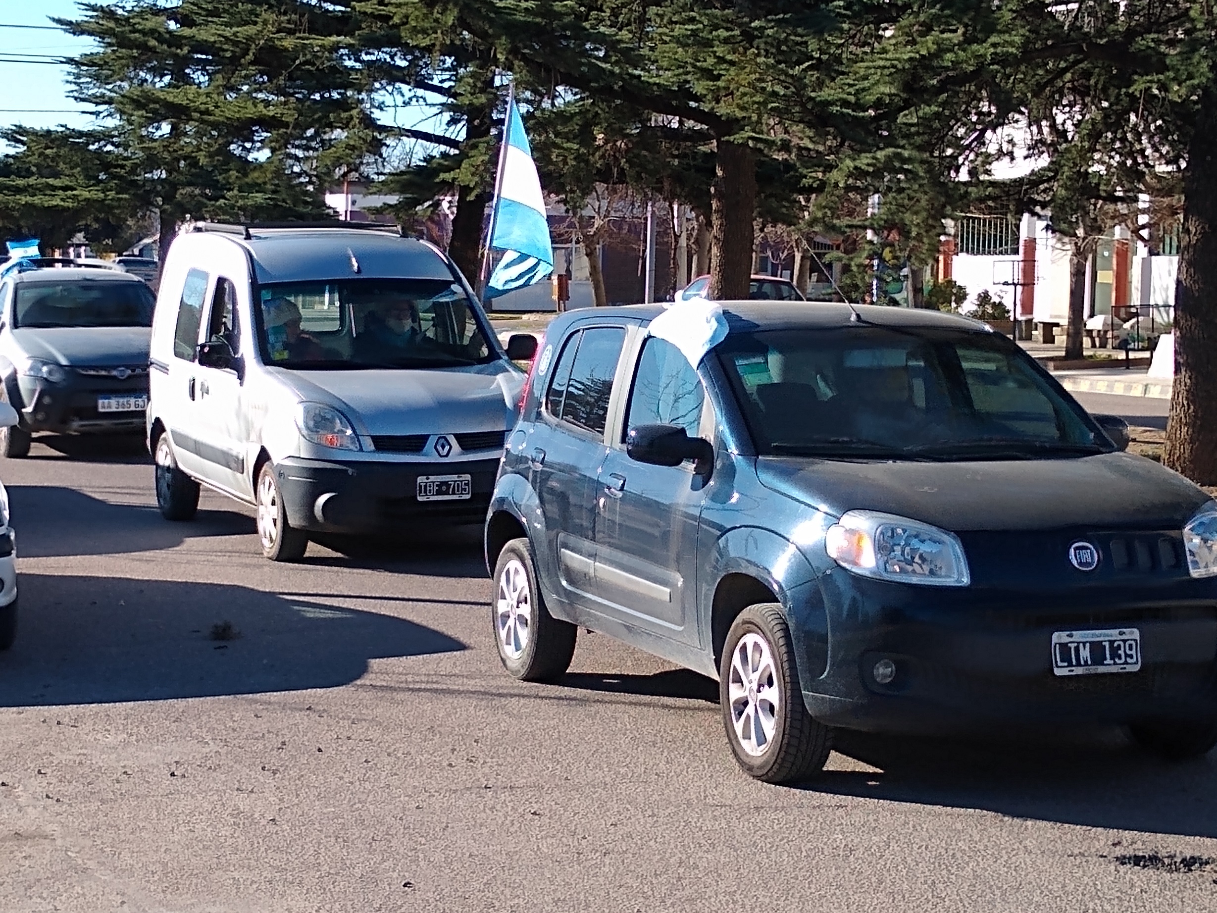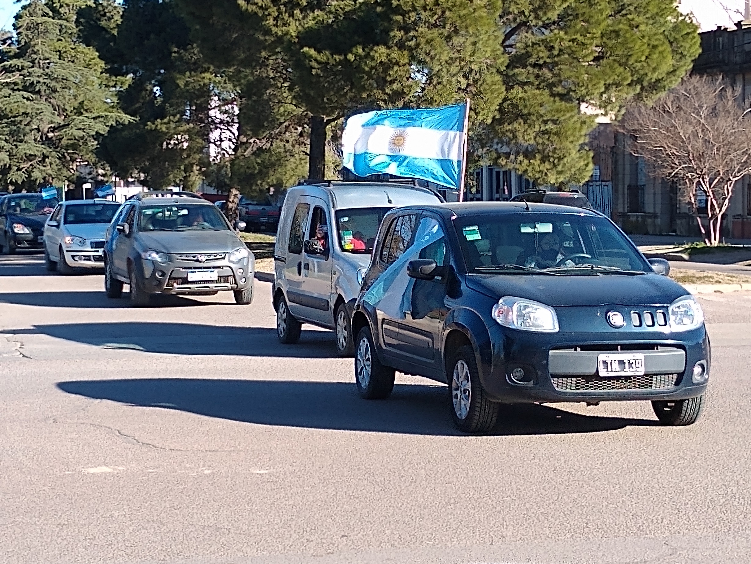 En nuestra ciudad, unos 24 vehículos recorrieron las calles haciendo sonar sus bozinas y portando la bandera Argentina.
