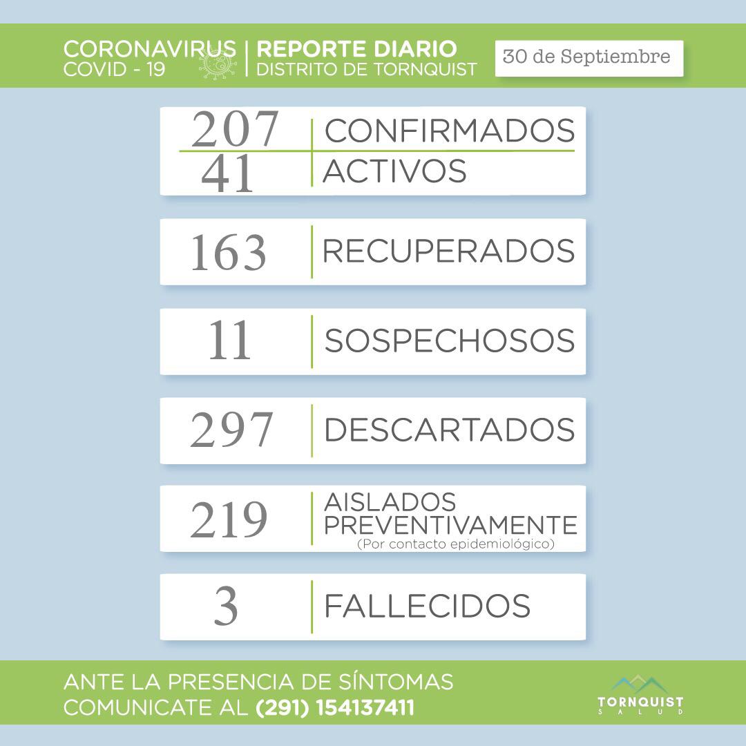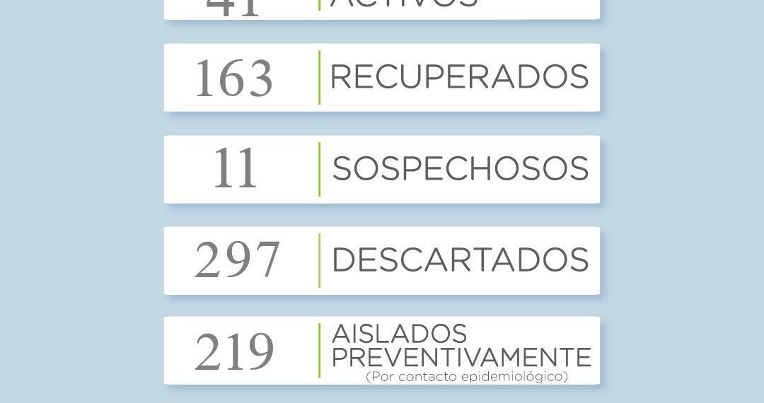 La secretaria de Salud informó que se sumaron ocho casos activos en las últimas horas, elevando el número de activos a 41 (207 en total), 163 recuperados, 11 sospechoso, 297 descartados, 219 personas aisladas de manera preventiva y tres fallecidos.