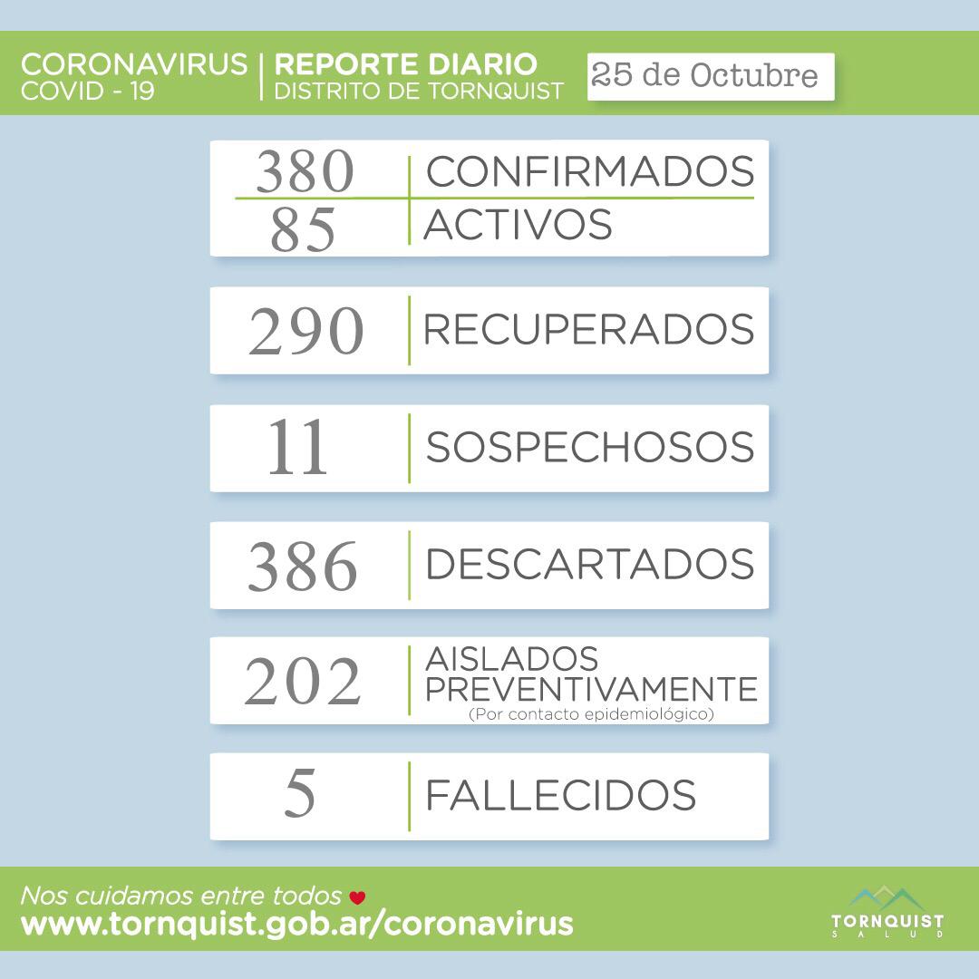 La Secretaría de Salud del Distrito de Tornquist informó esta mañana 5 nuevos casos postivos (4 en Tornquist y 1 en Chasicó).