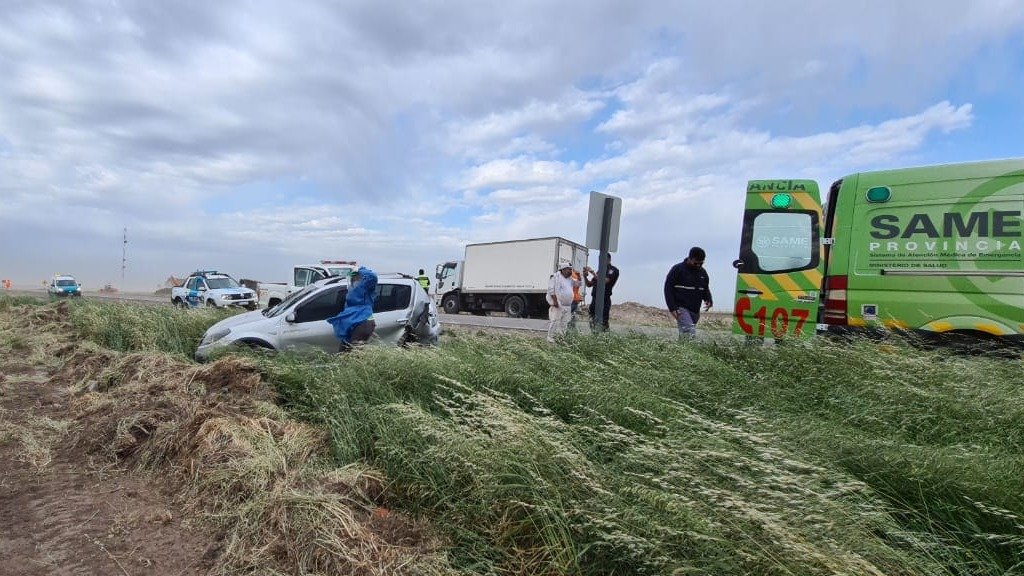 Trabajaron en el lugar policía vial y Defensa Civil. Pidieron circular con precaución por el sector: hay baja visibilidad por la tierra que se levanta producto de los fuertes vientos.