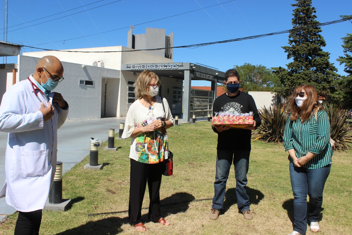 “Nosotros todos los años hacemos una actividad cultural para la comunidad y este año, en esta situación de pandemia, no pudimos hacer nada de eso y pensamos con la comisión que queriamos rendir un agradecimiento a todo el personal de salud y resolvimos a través de un presente a cada uno de los agentes de salud y con una tarjeta con un reconocimiento en un pequeño homenaje” dio Delia LLanos