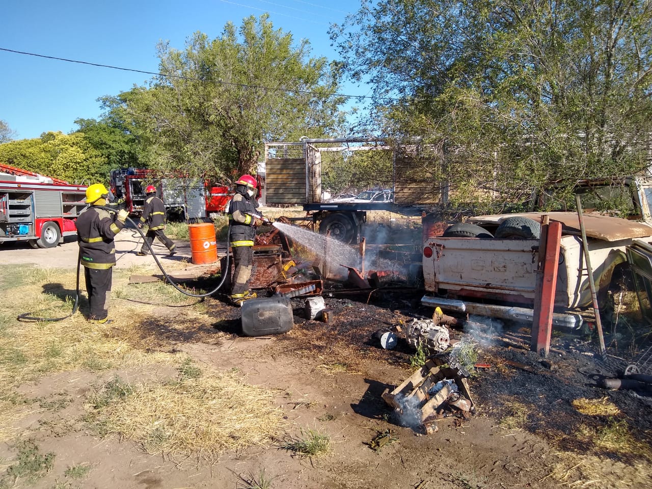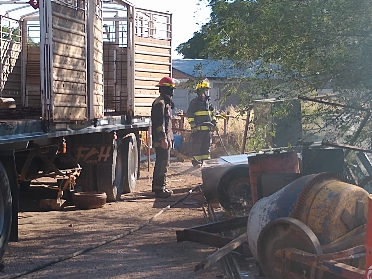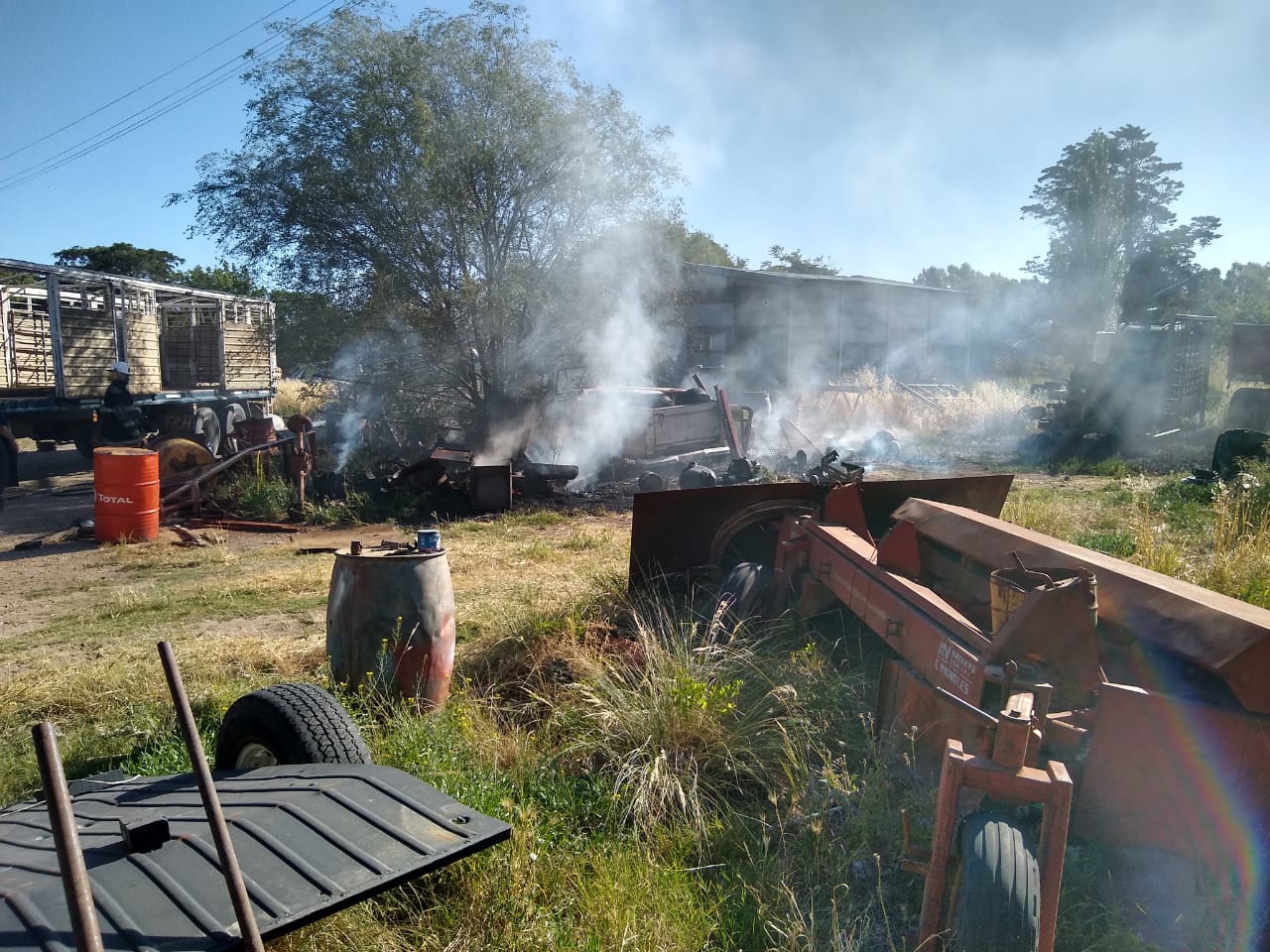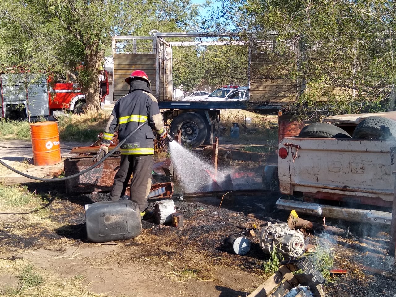 Un incendio se registró en la tarde de hoy en el frente de un taller ubicado en la Avenida Rivadavia al 300 de la ciudad cabecera, el cual afectó pastizal, algunos neumáticos y también hierros.