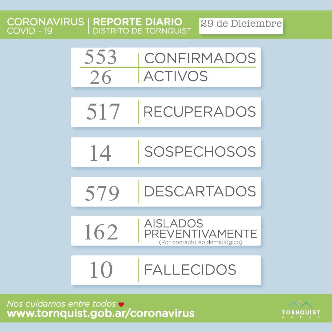 La Secretaría de Salud informó esta mañana que se reportaron 10 casos nuevos de COVID 19.(9 en Tornquist y 1 en Sierra de la Ventana)