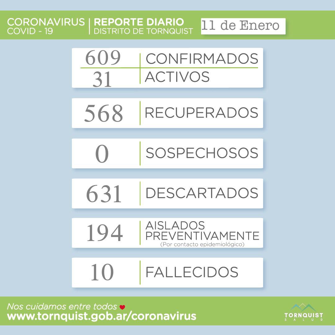 De esta manera, ahora hay 31 activis, 609 confirmados, 568 recuperados, sin sospechoso, 631 descartados, 194 personas aisladas de manera preventiva y 10 fallecidos.