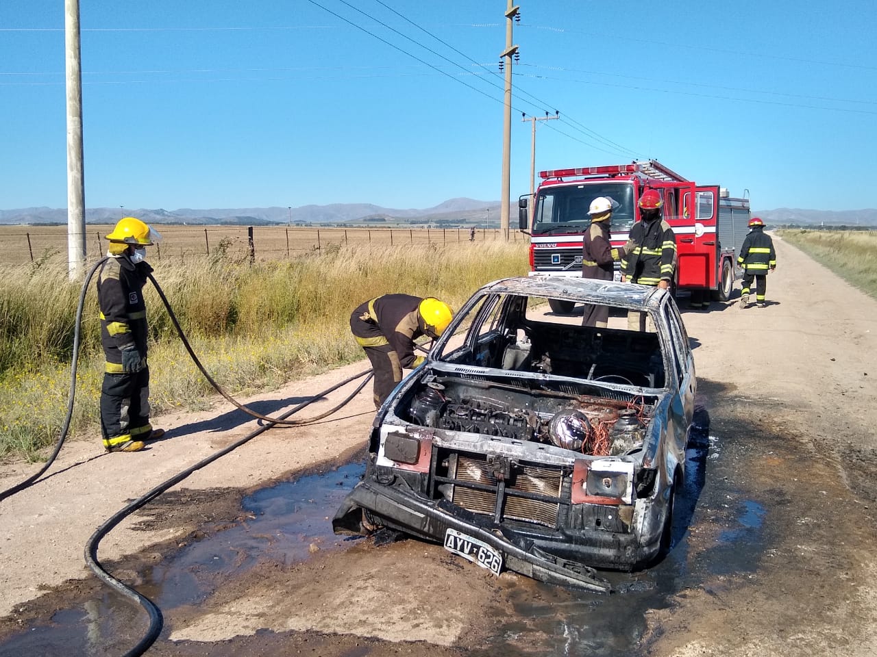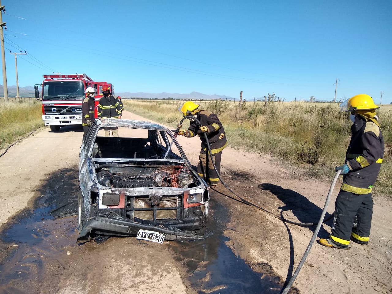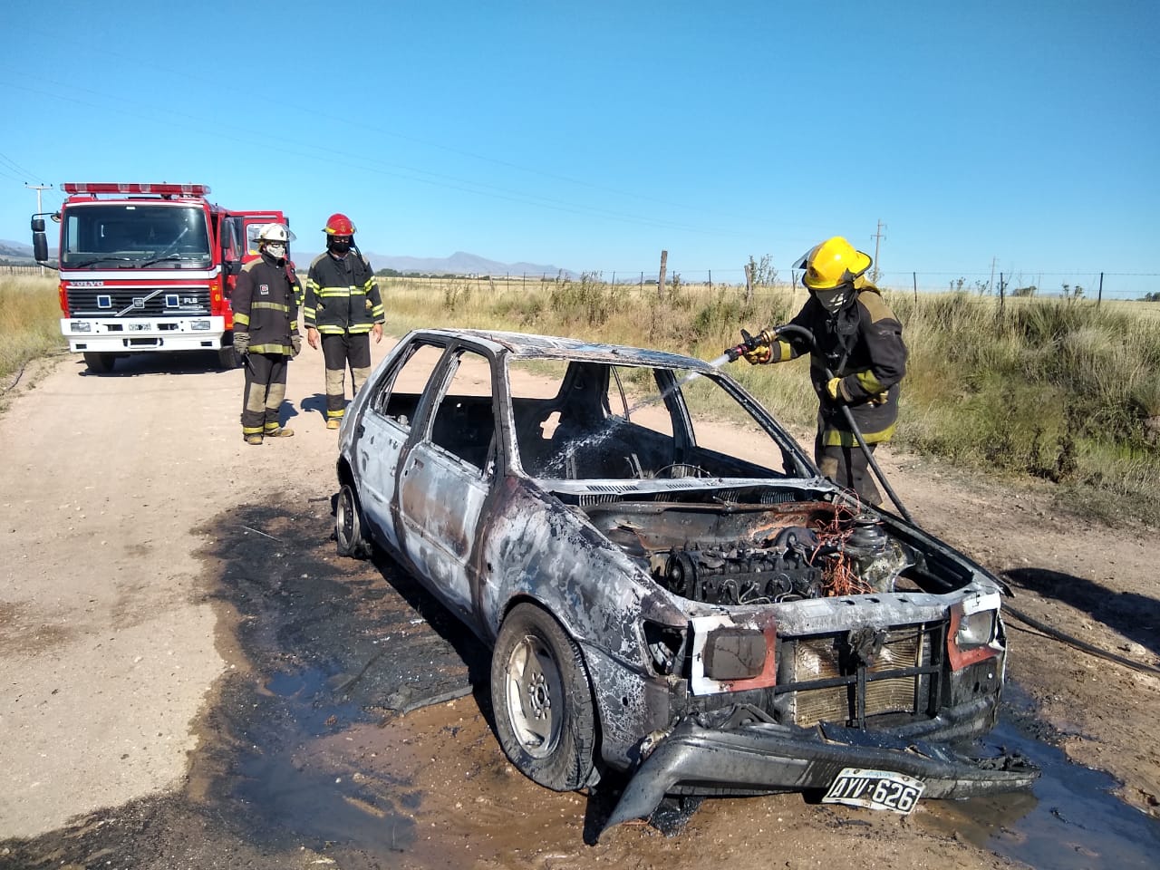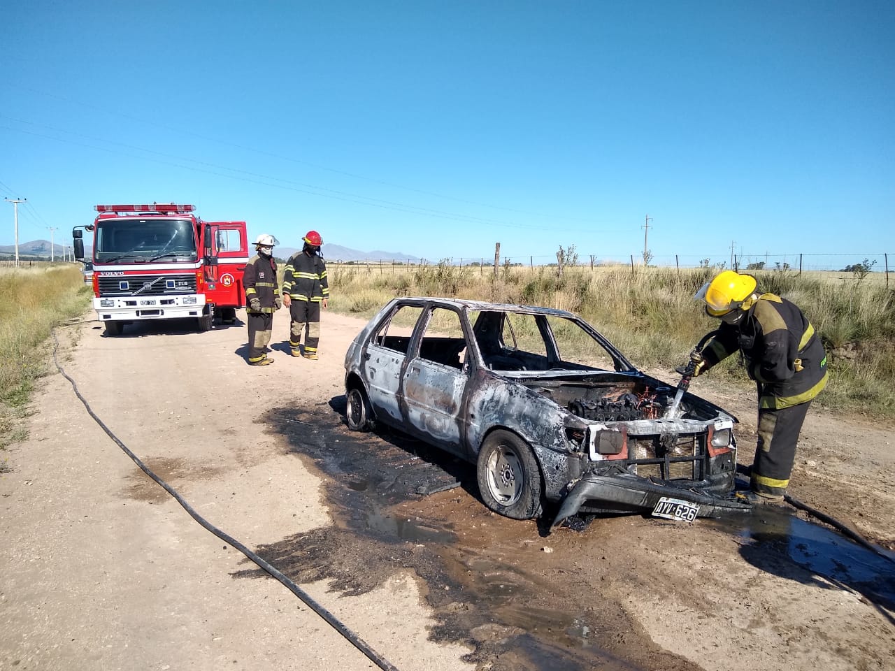 Por el incendio de un vehículo camino al basurero municipal concurrieron hace minutos los Bomberos Voluntarios de Tornquist.