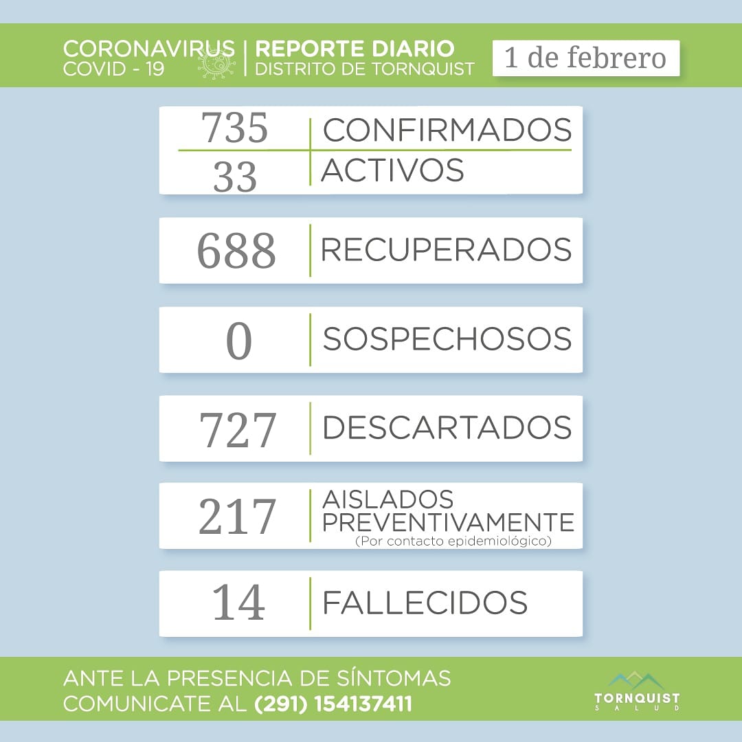 Ahora los casos activos son 33, con 735 confirmados, 688 precuperados, sin casos sospechosos, 727 descartados, 217 personas aisladas de manera preventiva y 14 fallecidos.