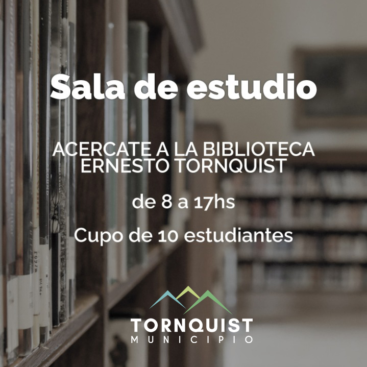 Ya se encuentra nuevamente habilitada la ‘Sala de Estudio’, el espacio propuesto por la Dirección de Juventud, Género y Diversidad Sexual y la Biblioteca Popular E. Tornquist, para estudiantes universitarios.
