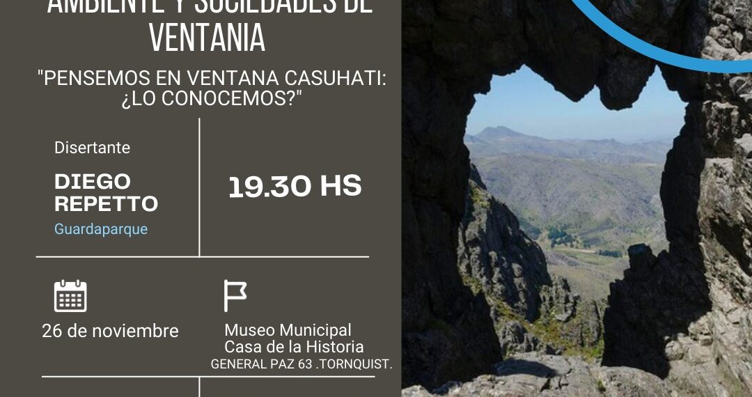 La primera jornada será “Pensemos en Ventana Casuhati: ¿Lo conocemos?”, tendrá lugar el viernes 26 a las 19.30 hs en el Museo (Gral. Paz 63) y estará a cargo del Guardaparque Diego Repetto.