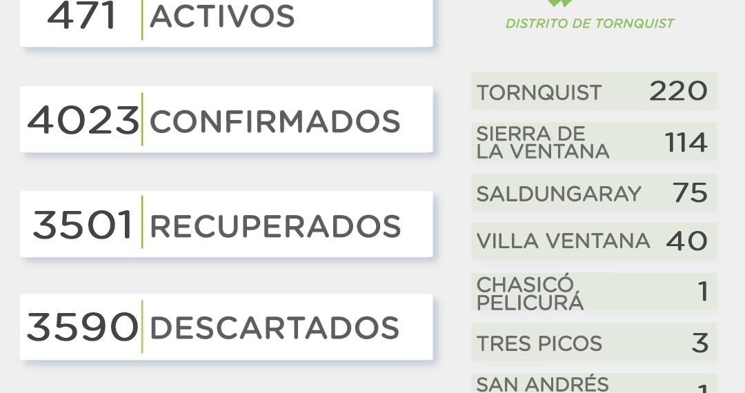 Ahora el total de activos es de 471; hay 4023 casos confirmados desde que arrancó la pandemia, con 3501 recuperados, 3590 descartados y 51 fallecimientos.