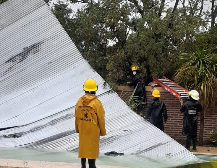Los Bomberos Voluntarios de Tornquist, a raíz del fuerte temporal de lluvia y viento, se encuentran trabajando desde las 11.30 de hoy (Jueves) en diferentes sectores de la ciudad, debido a la voladura de techos y árboles caídos.