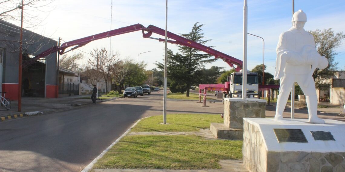 Avanzan las obras en el cuartel de Bomberos Voluntarios de Tornquist, donde se comenzó con la colocación del hormigón en el sector ampliado de la cuadra de vehículos.