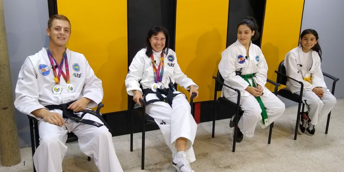 Los instructores de la Escuela de Taekwon-do “Ricardo Egoburo” de Tornquist, Tomás Steinbach y Andrea García Müller junto a las alumnas Lara Elizalde e Indiana Palavecino participaron del 1° Torneo Internacional de la Alianza Federal de Taekwon-do ITF.