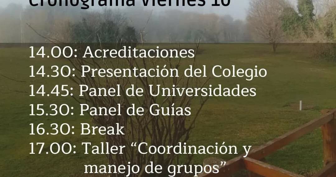 17.00: Taller “Coordinación y manejo de grupos”. Distintas miradas. A cargo de guías que actualmente se desempeñan en diversas áreas (naturales y urbanas).