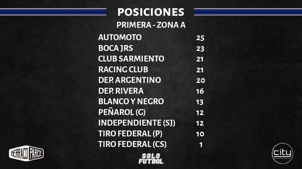 Automoto por su parte, ganó y subió a la cina de su Zona. Derrotó 1 a 0 a Deportivo Rivera como visitante con gol de Tiziano Gambirassi.