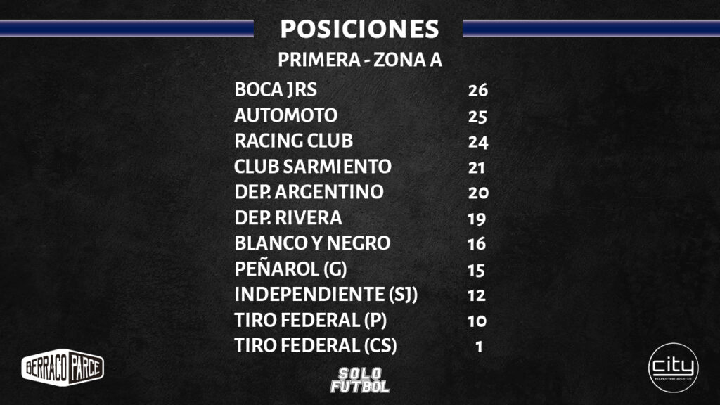 Automoto cayó como local en la última fecha de la etapa regular ante Peñarol de Guaminí por 2 a 1. Luis de la Canal y Braian Ravainera anotaron para la visita, Tiziano Gambirassi le había dado la igualdad transitoria al azulgrana. Se fue expulsado Nicolás Millán en el equipo de Sergio Martínez.