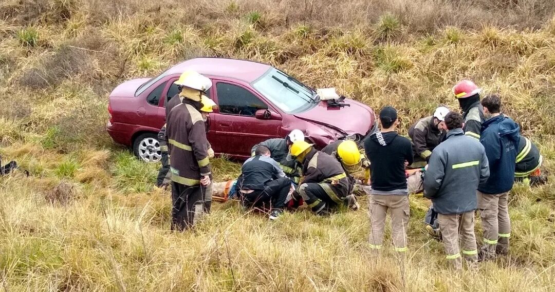 Tres personas con traumatismos leves fue el saldo del choque y posterior vuelco de un auto en la RP 76, a 1500 metros del paso a nivel.