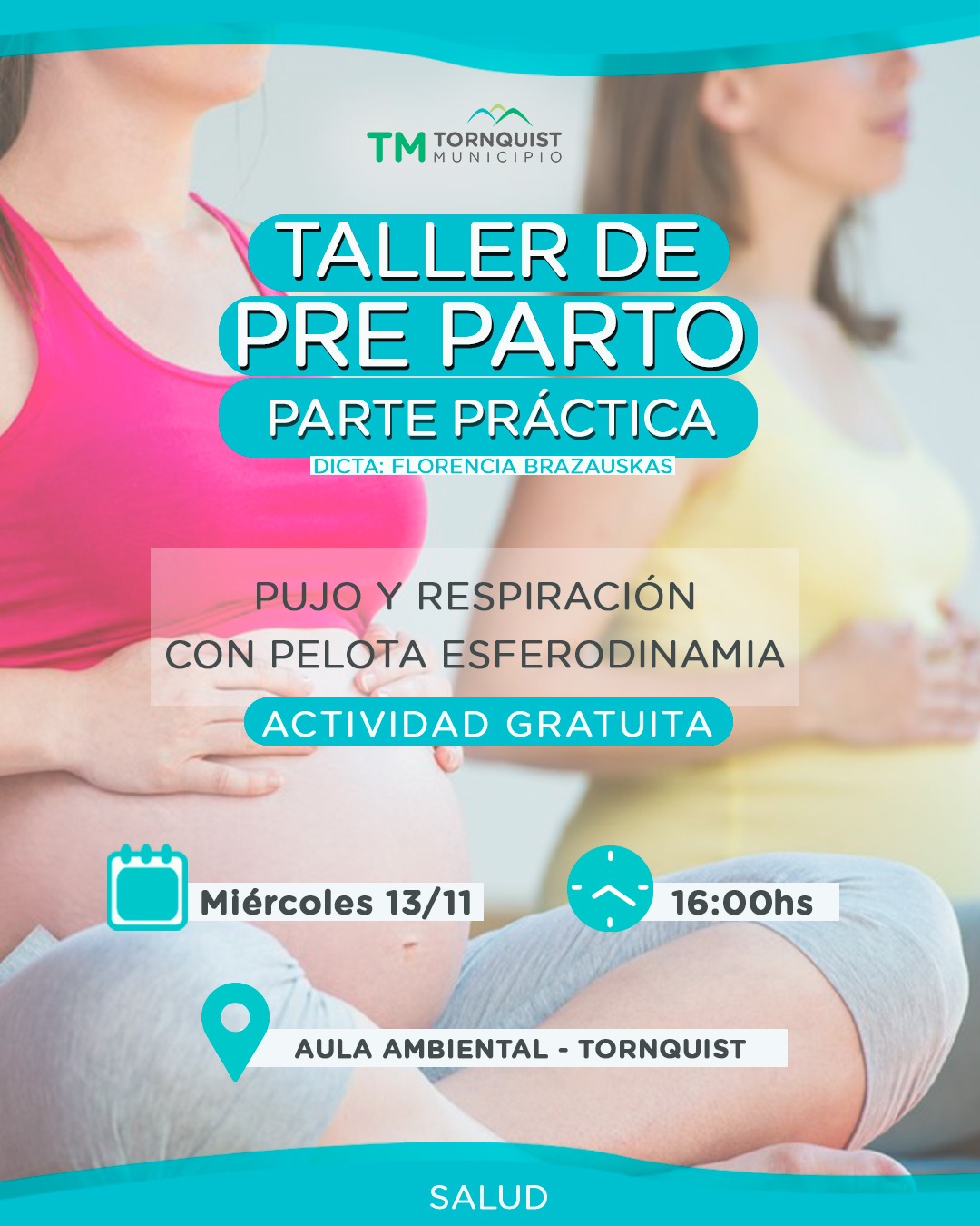La Secretaría de Salud municipal invita a todas las mujeres gestantes, sin obra social o ficha social, a participar de la segunda edición del taller de “Preparación para el parto”, que se llevará a cabo el próximo miércoles 13 a las 16hs, en el Aula Ambiental de Tornquist.