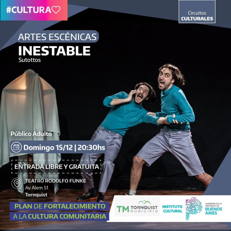 Se trata de ‘Inestable’, de la Compañía de TeatroSutottos, que se presentará con entrada libre y gratuita este jueves y el domingo: