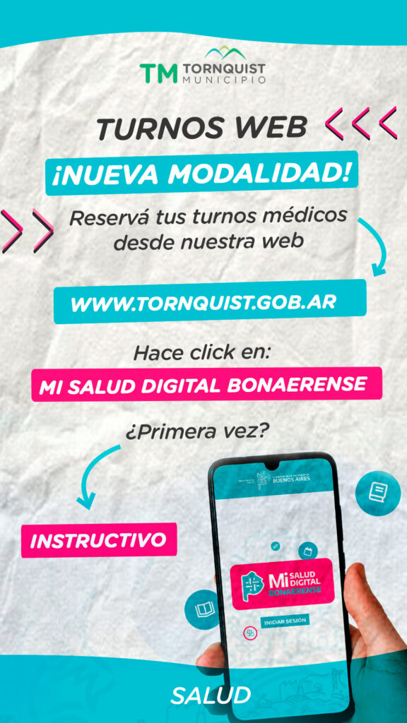 Las citas se gestionan a través del portal web del municipio, https://tornquist.gob.ar/, ingresando al sitio ‘Turnos web Salud’ y siguiendo las indicaciones.