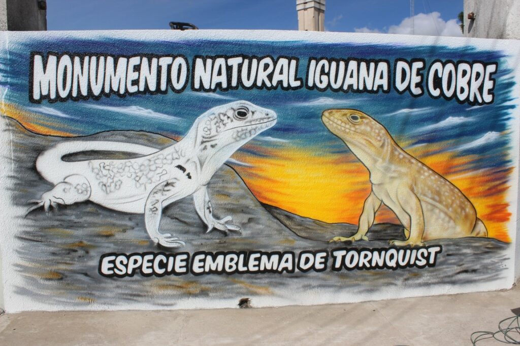 El mural, explicó, busca visibilizar a la iguana de cobre y fomentar un sentido de pertenencia en la comunidad: