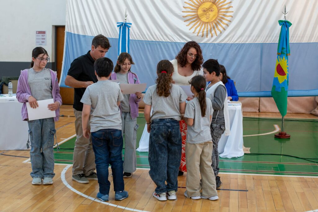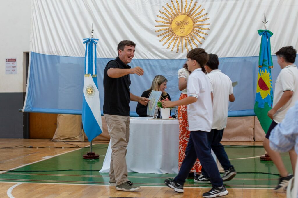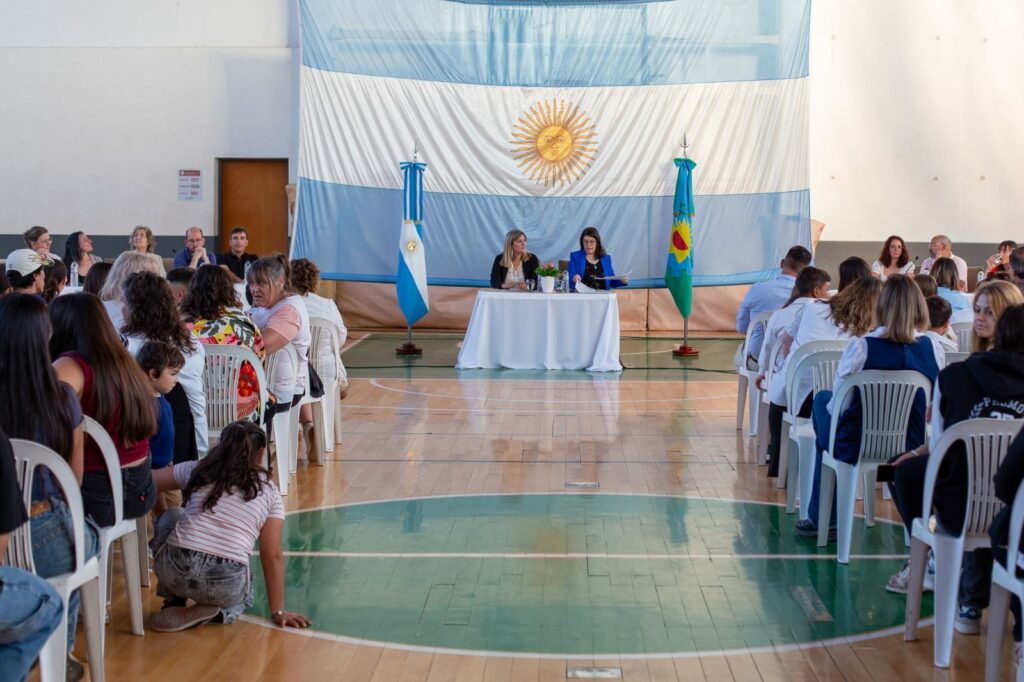 Había pensado algo más institucional y formal dado el rol, pero voy a hablar como me gusta hablar a mí cuando hablo con docentes, alumnos, familias y sobre todo referido a la educación. Hoy es un día que nos toca el corazón, porque hoy destacamos no solo el mérito, sino también sus historias, su compromiso, su esfuerzo, los sueños, lo que cada uno y cada una trae consigo. Y hoy tener acá a los abanderados, a las abanderadas, a los escoltas, nos hace pensar sobre todo de la Bandera Nacional, la Bandera Argentina, la Bandera Bonaerense, nos hace pensar la comunidad y el pueblo que queremos ser y a dónde queremos ir. Porque la escuela es la construcción de un futuro posible, como derecho y como esperanza. Hoy también no solo distinguimos o destacamos a quienes están hoy aquí presentes, sino a quienes día a día con su esfuerzo, con su dedicación, con sus ganas de superarse, pueden sortear alguna dificultad. Aquellos que tienen ganas de seguir estudiando, aquellos que se esfuerzan aun cuando nadie los ve. Me quiero detener un momento en reconocer y distinguir la educación para nuestros estudiantes adultos. Porque en ustedes (aplausos), porque ustedes traen toda la experiencia y todo el esfuerzo y además traen consigo el trabajo, el sostén de hogar, la crianza y además las ganas de superarse y de seguir aprendiendo. Ustedes nos recuerdan que siempre hay una puerta para abrir, una oportunidad para darse, que siempre es bueno y se puede soñar y escribir una nueva página. Eso los hace enormes y la verdad que ustedes inspiran. Además, quiero resaltar el acompañamiento de las familias. A veces tan sencillo como tan simple el acompañamiento silencioso, el reconocimiento, el compromiso, el poder dar un abrazo. Detrás de cada logro hay un mate compartido, hay una frase que es imprescindible, hay un vos podés. Y eso créanme que es impagable. Hoy, abanderadas, abanderados, escoltas, quiero decirles que tomen este reconocimiento como una caricia al esfuerzo, pero no como un punto de llegada, sino como un punto de partida para seguir construyendo el distrito y el futuro que nos merecemos y que todos queremos. Gracias por recordarnos que en la educación se comienza a escribir el futuro para todos y para todas. Muchas gracias, felicitaciones. (Aplausos)