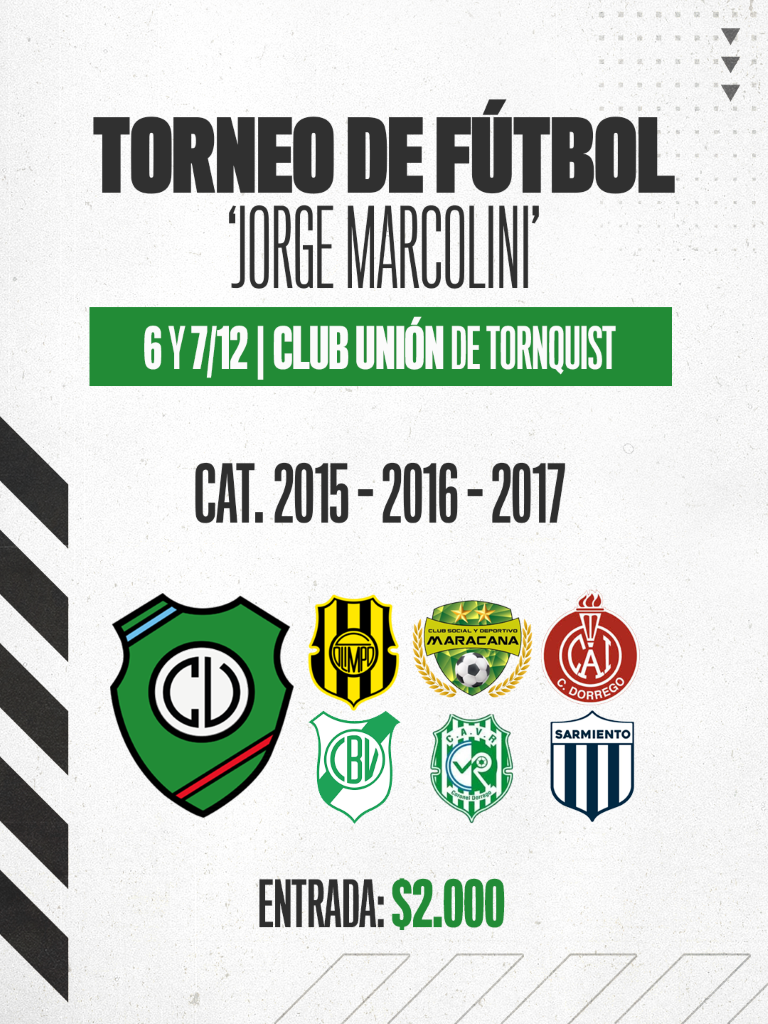 Durante el sábado y el domingo venideros, el Club Unión de Tornquist realizará el Torneo de Fútbol ‘Jorge Marcolini’.