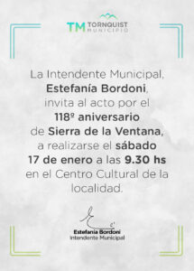 Con diversas actividades programadas, la comunidad de Sierra de la Ventana celebrará el 118° aniversario de la fundación de la localidad.