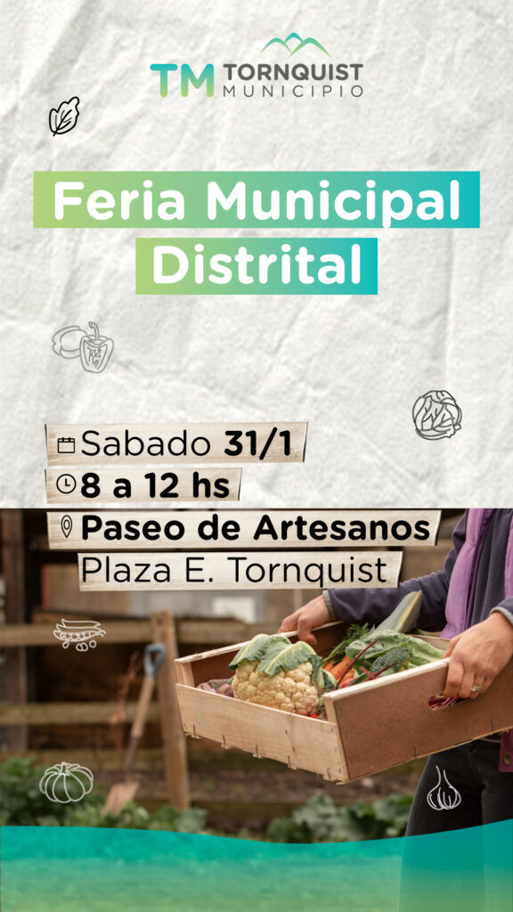 La Secretaría de Ambiente y Desarrollo Productivo deTornquist Municipio informa que. este sábado 31. se volverá a realizar la Feria Municipal Distrital, un espacio que promueve la producción local y el consumo de alimentos frescos.