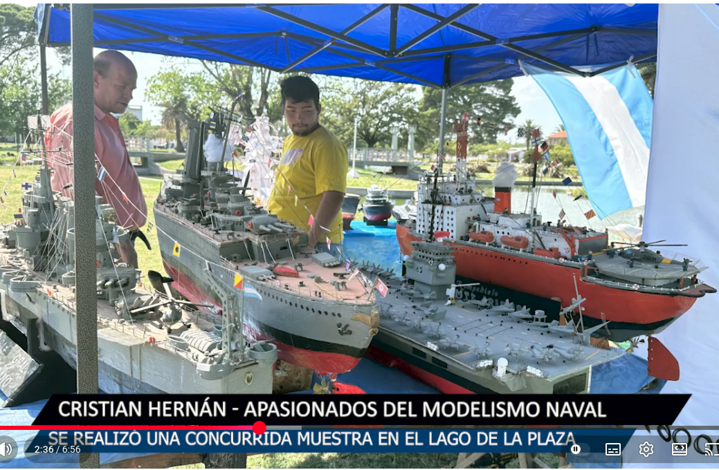 El lago de la Plaza Ernesto Tornquist fue escenario de una propuesta distinta y familiar durante el fin de semana: una muestra de modelismo naval organizada por Cristian y Jano Hernán, padre e hijo, quienes desplegaron una colección de embarcaciones a escala construidas artesanalmente y, en su mayoría, totalmente navegables.
