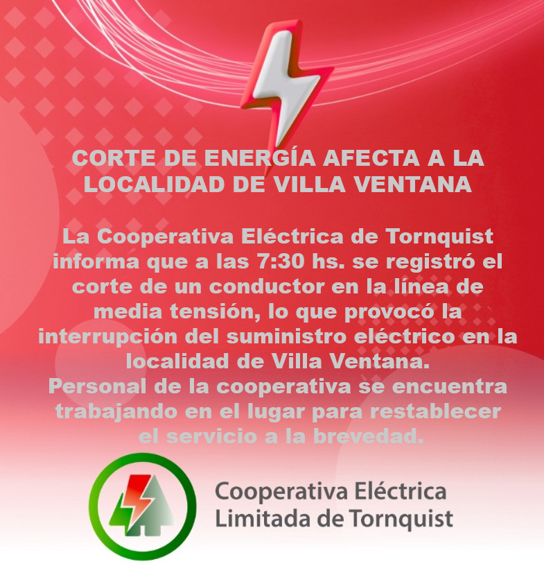 CORTE DE ENERGIA AFECTA A LA LOCALIDAD DE VILLA VENTANA