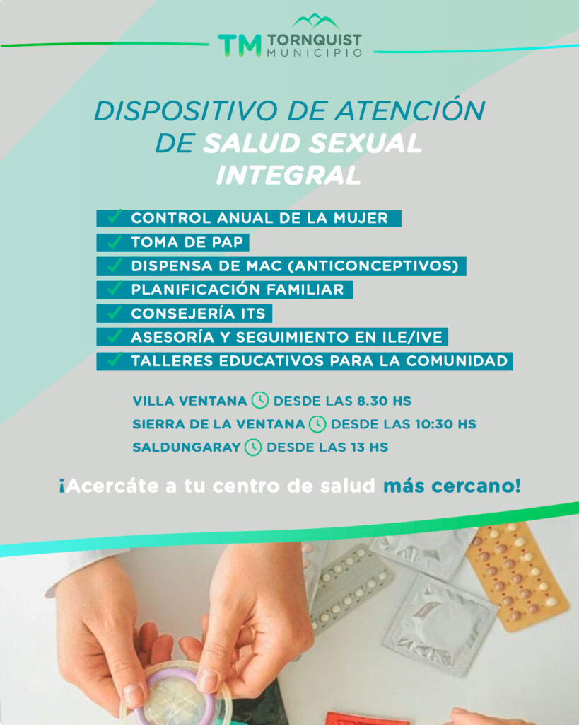 La Secretaría de Salud informa los nuevos horarios de atención del dispositivo de Salud Sexual Integralen diferentes localidades del distrito.