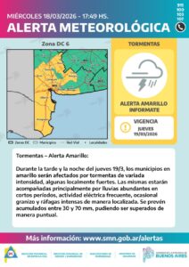 Descripción alerta amarillo por tormentas – Jueves 19/3