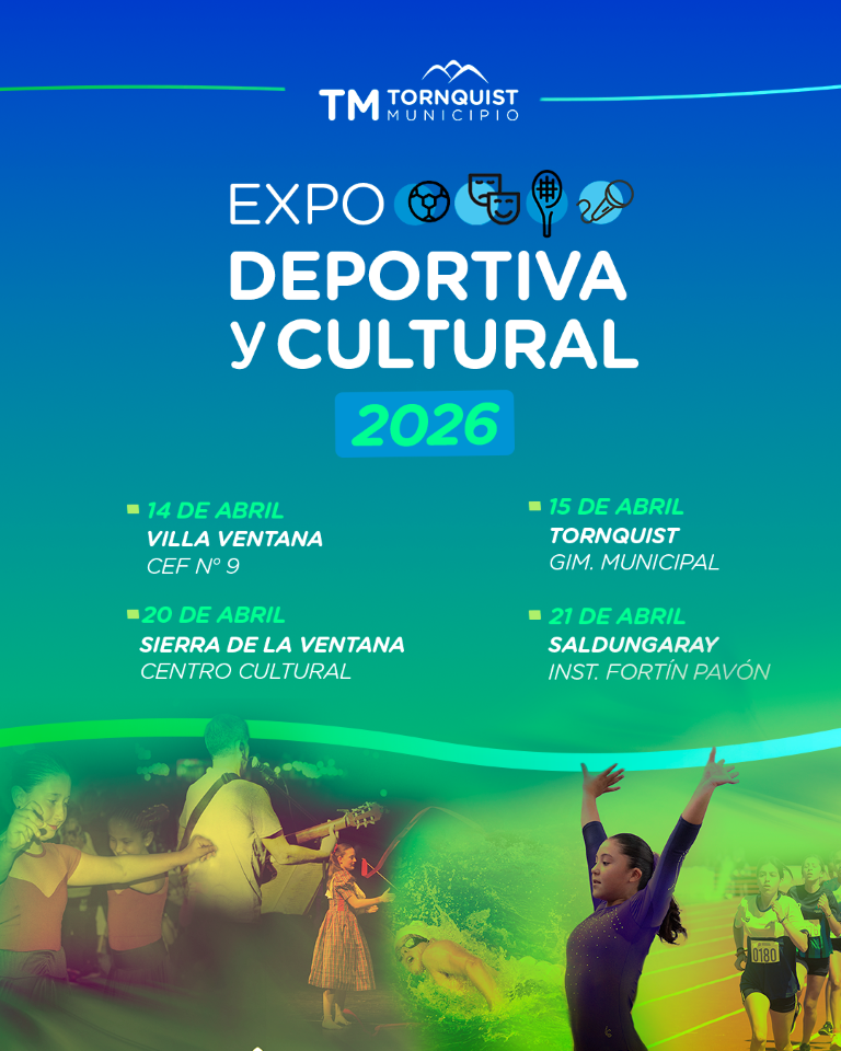 Tornquist Municipio invita a las instituciones del distrito a participar de la Expo Deportiva y Cultural, que se llevará a cabo entre el 14 y el 21 de abril en diferentes localidades.