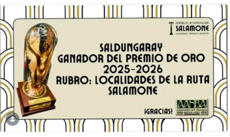 Saldungaray fue distinguido con el Premio de Oro 2025–2026 en el rubro “Localidades de la Ruta Salamone”, en el marco de un concurso organizado por la Asociación Art Nouveau Argentina.