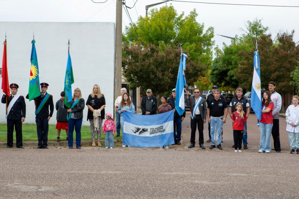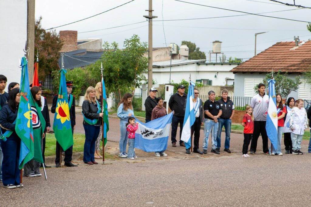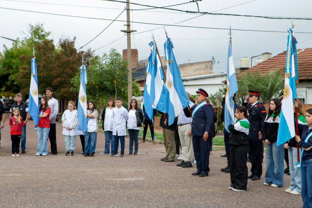El acto fue encabezado por la intendente municipal, Estefanía Bordoni, y dio inicio con el izamiento del Pabellón Nacional, a cargo de la presidenta del Honorable Concejo Deliberante, Carmen Soverchia.