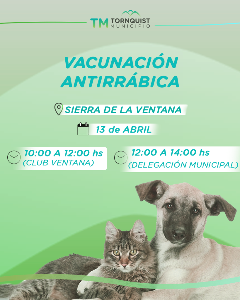 La Subsecretaría de Bromatología y Zoonosis llevará adelante una nueva jornada gratuita de vacunación antirrábica para caninos y felinos en Sierra de la Ventana, dando continuidad a las acciones de prevención y cuidado de la salud animal que se vienen desarrollando en todo el distrito.