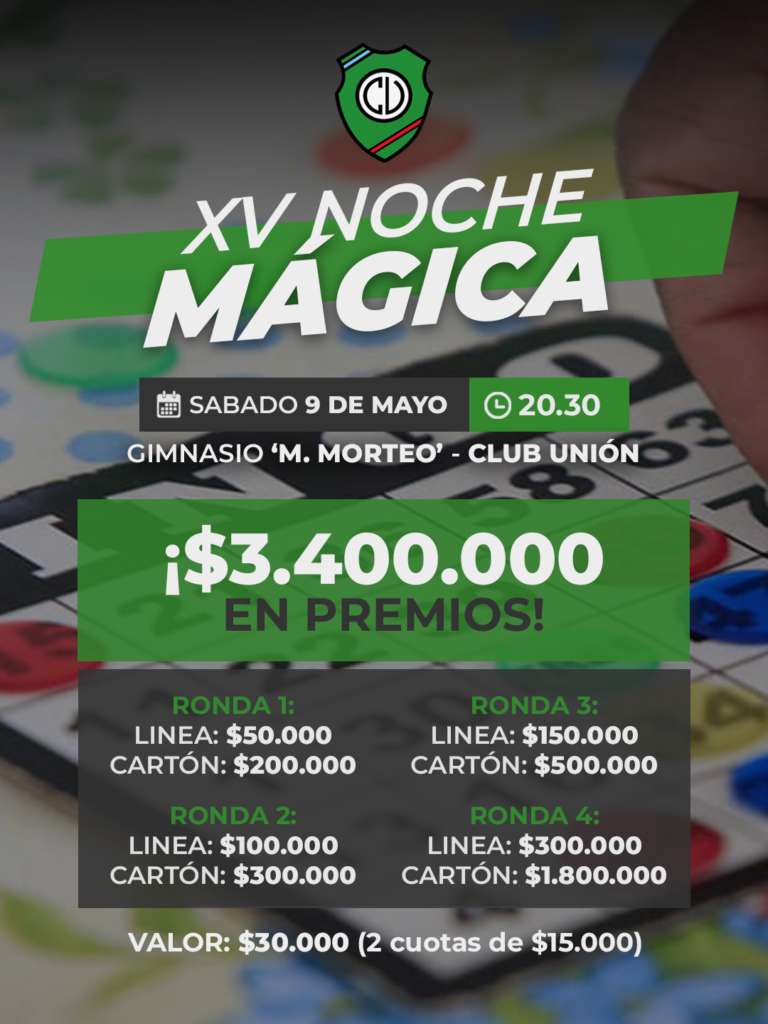 9 de mayo: XV Noche Mágica, el gran bingo familiar del Club Unión