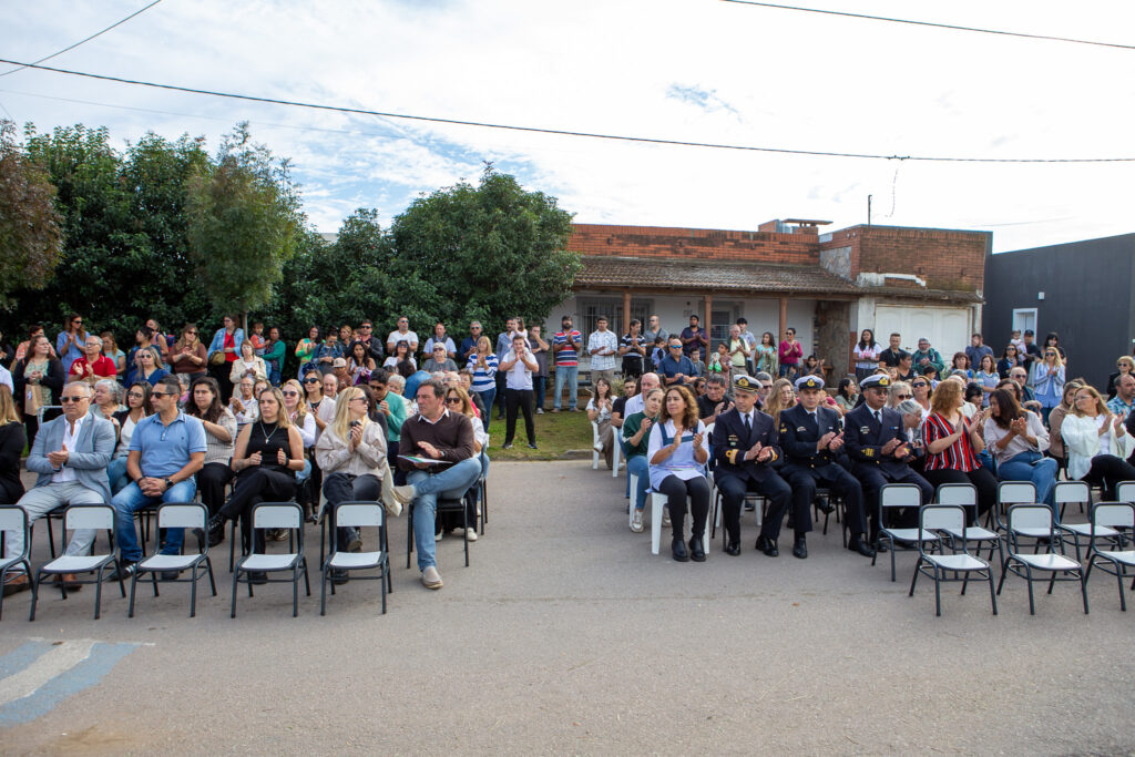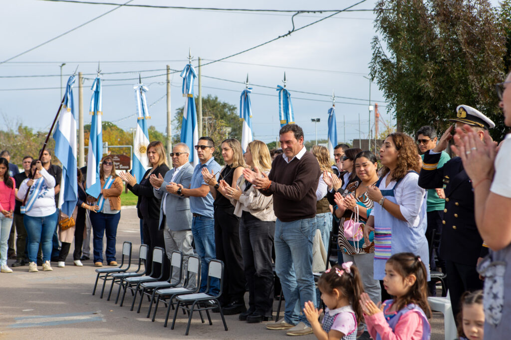 La ceremonia fue encabezada por la intendente municipal, Estefanía Bordoni, acompañada por integrantes de su equipo de gobierno y del Honorable Concejo Deliberante, el director asociado del Banco Provincia, Sergio Bordoni, y autoridades de la Intendencia de la Base Naval Puerto Belgrano, padrinos de la institución educativa.
