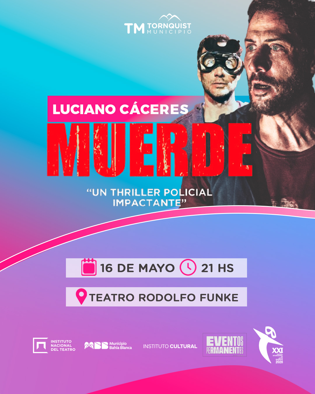 El reconocido actor Luciano Cáceres llega a Tornquist con su unipersonal ‘Muerde’, que presentará el 16 de mayo a las 21 hs en el Teatro Municipal ‘Rodolfo Funke’.
