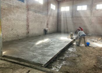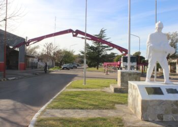 Un nuevo avance en la construcción del piso para la cuadra de vehículos del Cuartel de Bomberos de Tornquist, se...